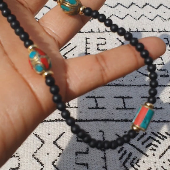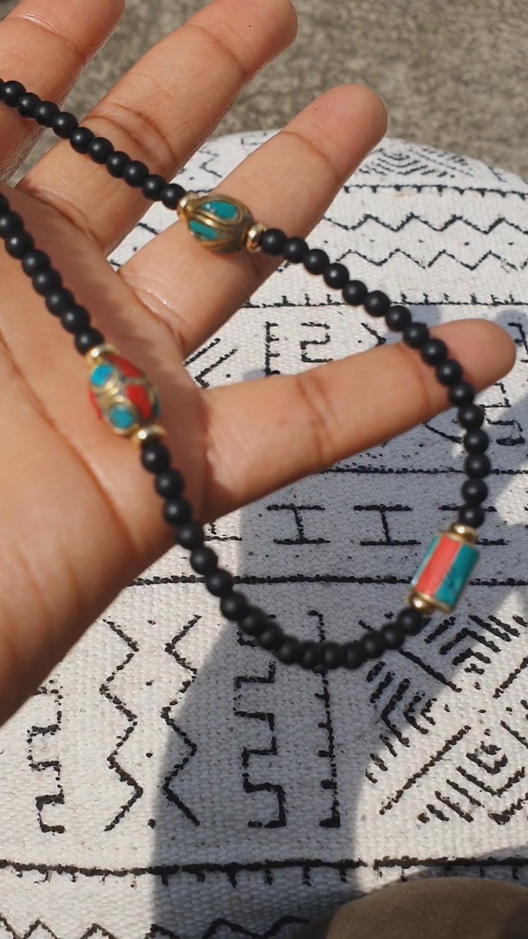 This Black Matte Onyx Necklace features a striking combination of smooth, matte black onyx beads and polished brass accents, creating a look that is both modern and classic. Black matte onyx is known for their grounding and protective qualities.